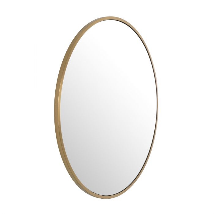 De ronde Heath-spiegel past in tal van decors – van traditioneel tot eigentijds – en evolueert met uw veranderende smaak. Het slanke frame van geborsteldmessing heeft een gepolijste afwerking, terwijl de spiegel binnenin voor een helderereflectie zorgt.