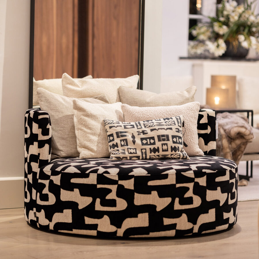 Rond daybed. Een prachtig meubel om in te ontspannen. De Olivia is ook verkrijgbaar als hocker.