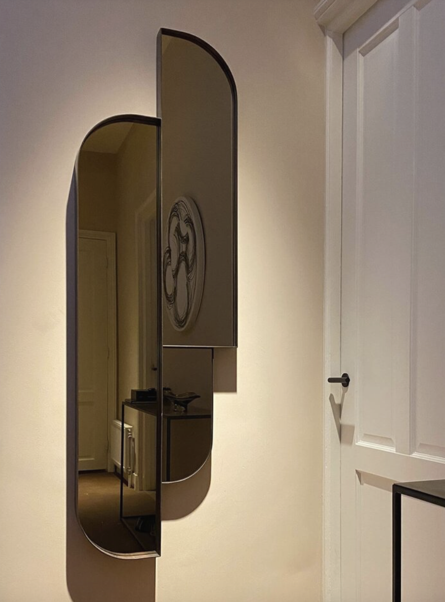 De Webster Spiegel combineert kunst en functionaliteit met een gedurfd asymmetrisch design. Het gelaagde metalen frame en 6 mm fumé spiegelglas creëren een luxe uitstraling. Kies uit diverse afwerkingen voor een uniek statement in jouw interieur.