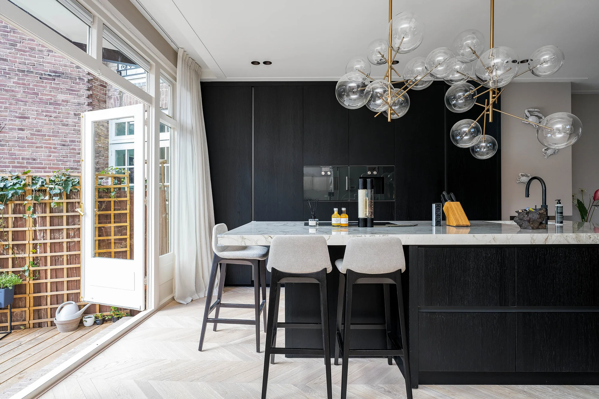 De kroonluchter kan op zichzelf gebruikt worden als een duidelijke statement of gecombineerd worden met andere verlichting om een gelaagde en sfeervolle setting te creëren.