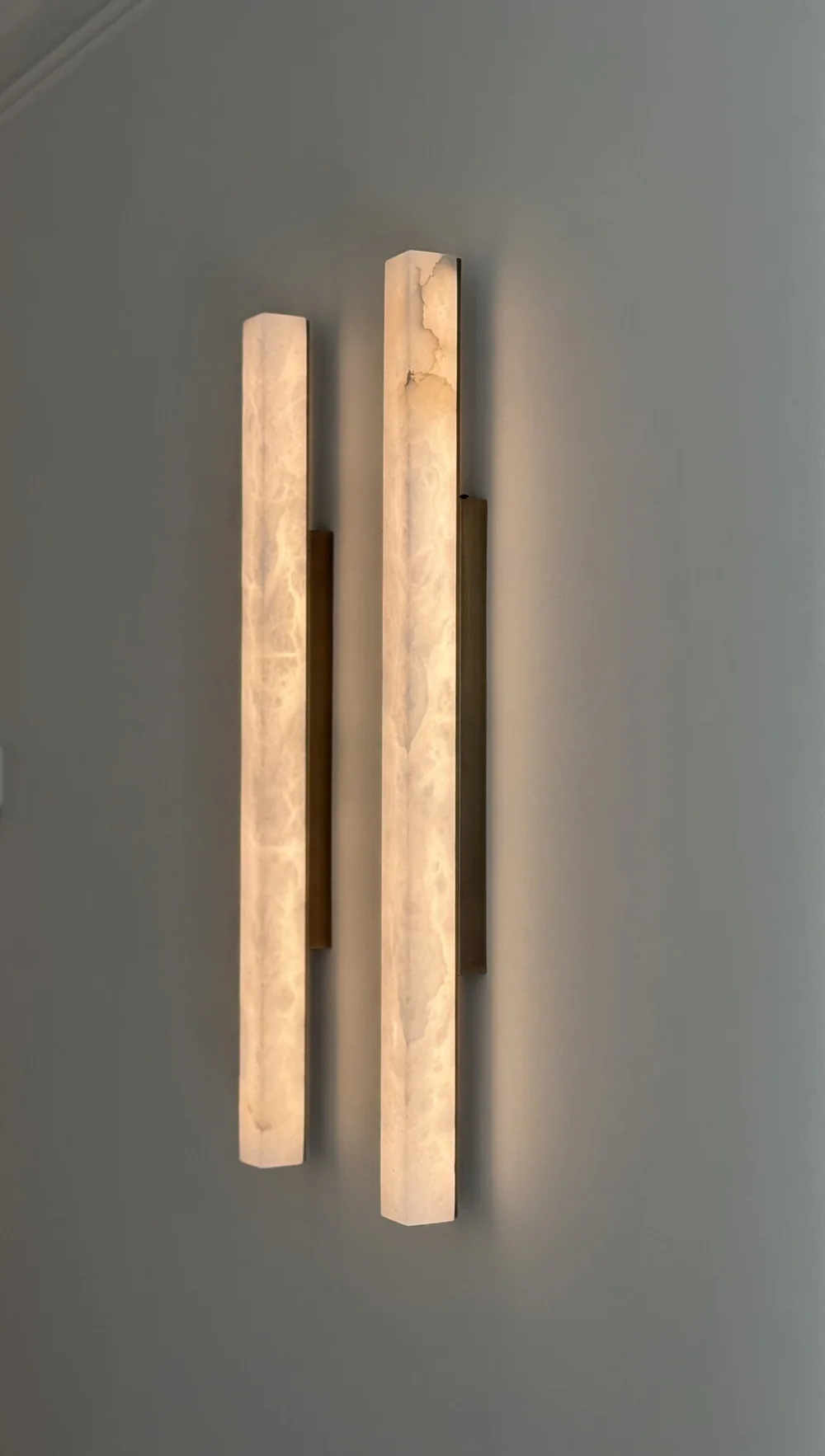 Hij is vervaardigd uit alabaster en metaal met een bronzen afwerking. Het ontwerp richt zich op warm en comfortabel licht dat bijdraagt aan een ontspannen sfeer.