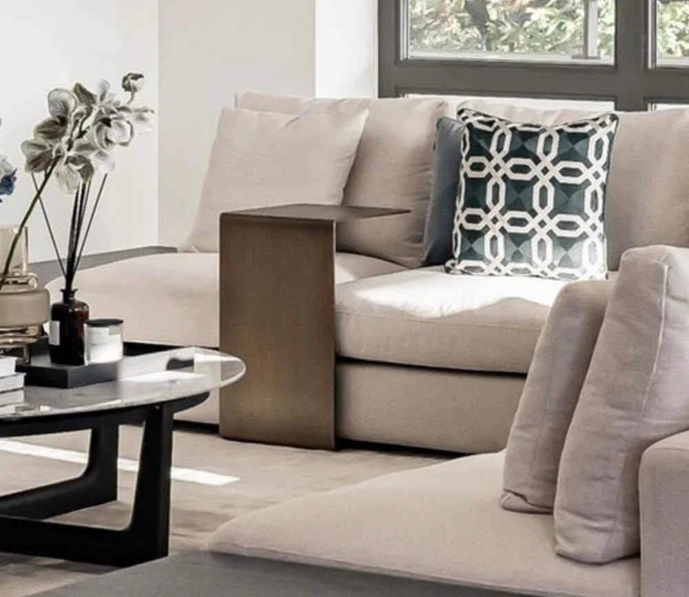 De MATEU-sidetable is ontworpen als een compact accent dat materiaal en proportie benadrukt.