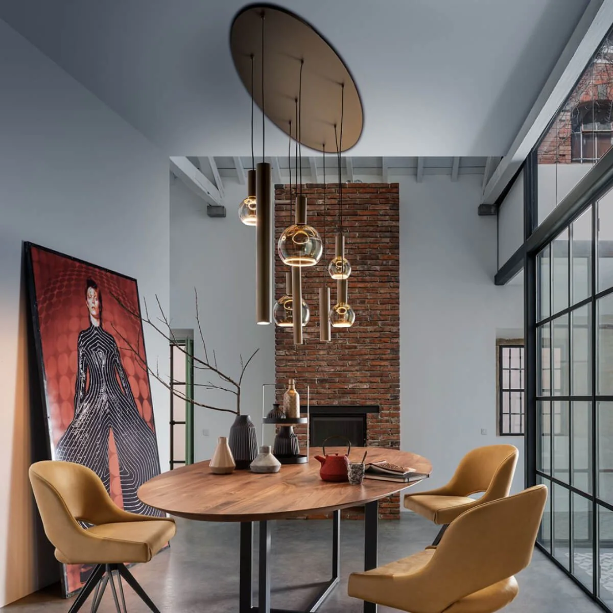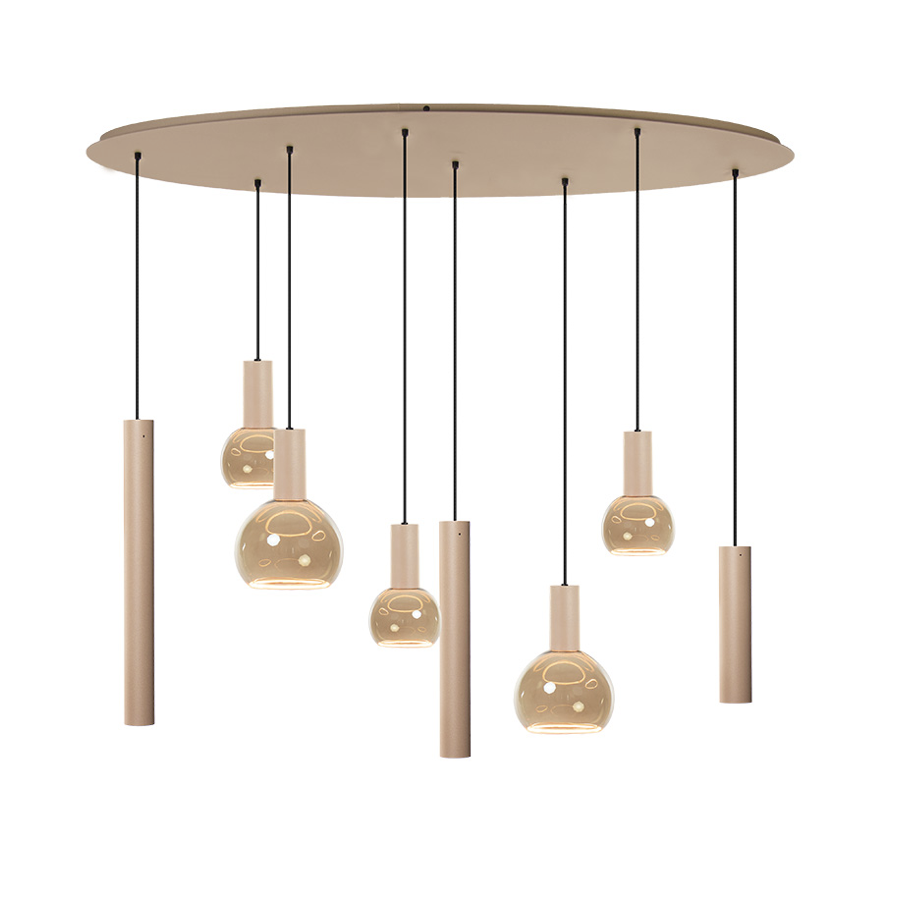 Voorzien van 8 lichtbronnen, biedt de Riva hanglamp optimale verlichting voor grote en middelgrote ruimtes. De strategisch geplaatste lampen zorgen voor een gelijkmatige lichtverdeling, wat een warme en uitnodigende sfeer creëert. Deze lamp is perfect voor gezellige diners, levendige gesprekken of productieve werkuren.